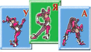 Состав: 10 карточек (картон, цветная печать) с образами гласных букв русского алфавита: Арлекин, Орлекин, Урлекин и т.д.