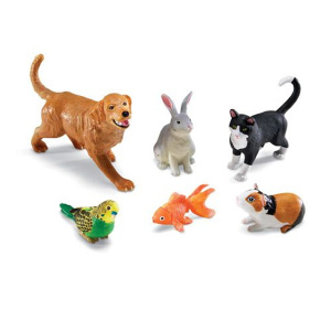 В набор входит 6 крупных, детально проработанных и тщательно прорисованных фигур: собака, кошку, кролик, морская свинка, попугай и золотая рыбка.