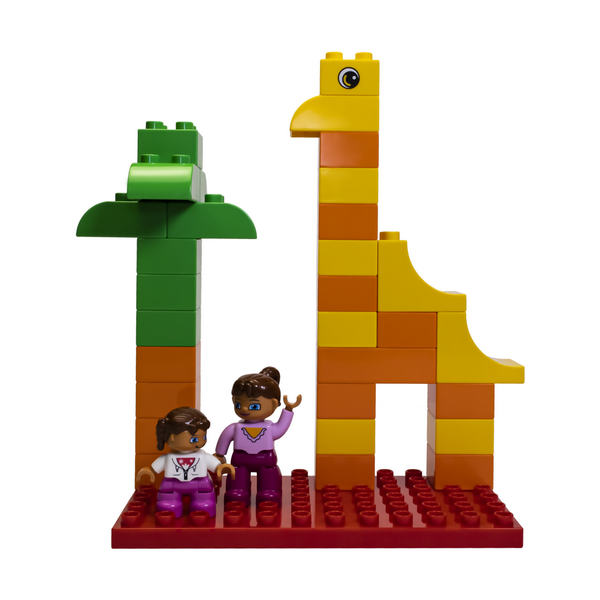 - Сделают своими руками транспорт из блоков с колёсами, вольеры из заборчиков для зоопарка;