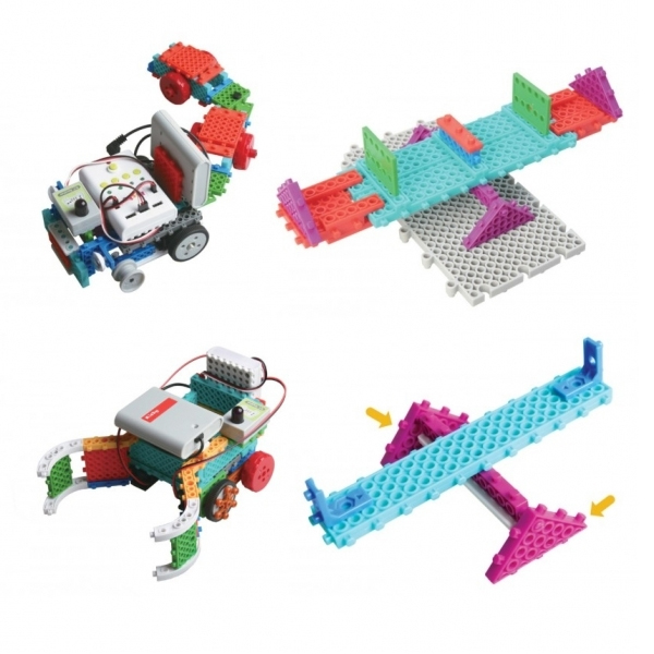 Данный конструктор предназначен для начинающих робототехников 6-8 лет, является средним по уровню сложности и не имеет возможности программировать роботов. Детали конструктора позволяют производить сборку модели с шести сторон, что приводит к неограниченному количеству комбинаций и существенно увеличивает количество вариантов трехмерных роботов. Работа с конструктором развивает пространственное мышление, навыки конструирования и моторику рук, знакомит детей с принципами действия основных механизмов.