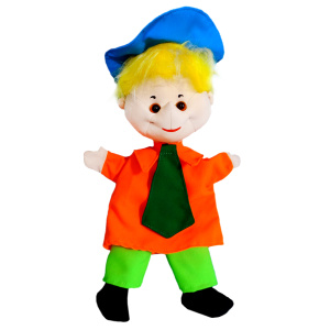 Этот непоседа в ярком костюме с галстуком и колпаком на голове будет всегда желанным гостем представления. Дети могут сами попробовать "оживить" персонаж в театрализованной кукольной постановке. Активная работа с такой игрушкой развивает моторику рук, творческое воображение, способствует развитию устной речи и умению менять ее интонацию.